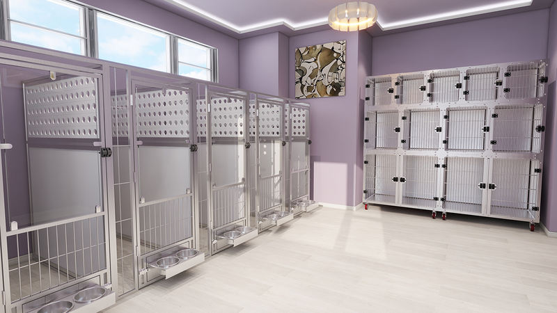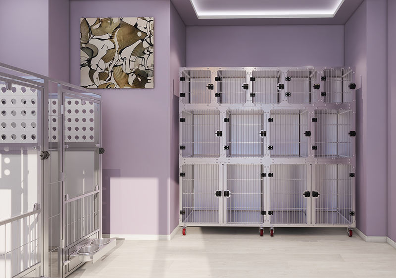 Çoxməqsədli Heyvanlar üçün İnternat və Karantin Qəfəsi, sidik sızmasının qarşısını almaq üçün kənara meylli kənarları və qüsursuz sıçrama qoruyucuları olan tullantı qabına malikdir. Ayaq dayağı şəbəkəsi ayrılmış qaynaqları və çirklənməni aradan qaldırmaq üçün yüksək tezlikli qaynaqdan istifadə edir. Sürüşən qapı kilidi maqnitli ikili kilidli qapı sistemini özündə birləşdirən seçilmiş modellərlə ev heyvanlarının qaçmasının qarşısını almaq üçün avtomatik olaraq qorunur.